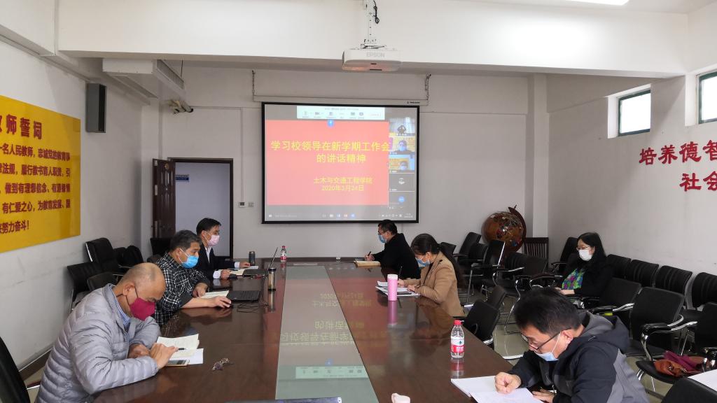 2020年3月24日下午,土木与交通工程学院教工行政支部开展了“把疫情当教材,与学校共成长”主题党日活动。通过在线会议的形式,组织支部党员集体学习了学校领导在新学期工作会议上的讲话精神。校党委书记许琰简要分析了当前新冠肺炎疫情形势,解读了党中央、省委关于疫情防控的重大决策部署,讲述了战“疫”感人故事。许琰书记强调,疫情不解除,防控不松动,抓好开学前后的疫情防控工作必须遵守四个原则,即统筹谋划、统筹安排,统一指挥、统一行动,精准施策、精准发力,科学防控、联防联控。必须做到二个围绕,即围绕开学做好疫情防控工作,围绕恢复正常教学和生活秩序做好准备,一手抓疫情防控,一手抓事业发展。必须坚持三个导向,即坚持问题导向,补齐短板,科学管理,精准施策,立行立改;坚持过程导向,完善工作机制,压实工作责任,从严从细从实抓好网格化管理;坚持目标导向,坚决将病毒阻挡在校门之外,确保师生生命安全和身体健康。围绕“双高校”年度建设任务,就如何做好2020年度重点工作提出具体要求。党委副书记、校长祝玉华代表校党委对2019年工作做了总结和回顾,对2020年党政工作进行了安排部署。祝玉华校长希望全体教职工坚定信心、奋发有为,以更高站位、更宽视野、更远眼光,只争朝夕,不负韶华,奋力谱写黄河水院砥砺发展的新篇章,为中原更加出彩作出新的更大贡献。