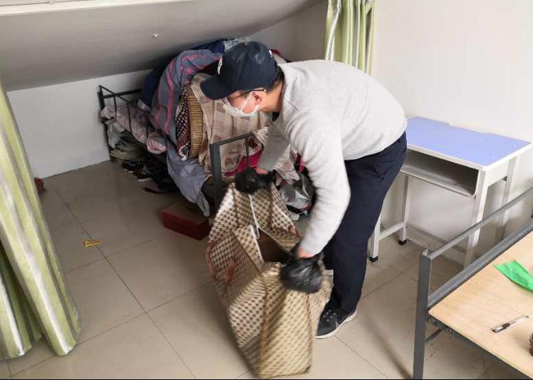 经过5个小时的艰苦奋战,将原来学生放置于此处的生活、学习物品归类整理打包存放,并对观察室卫生进行彻底整理清扫,为学生复学返校筑牢第一道防线,为消除潜在的疫情隐患做好充分准备,为疫情防控工作创造一个安全、干净、舒适、愉悦的观察室环境。