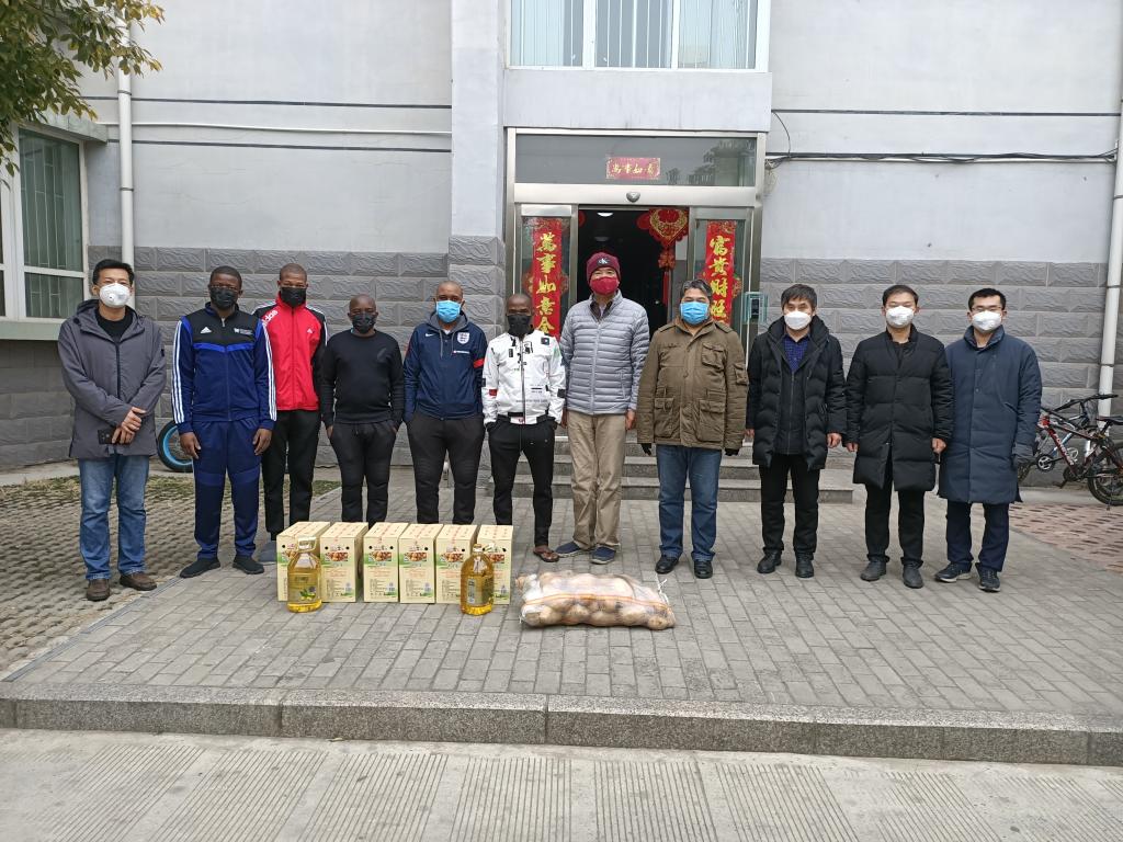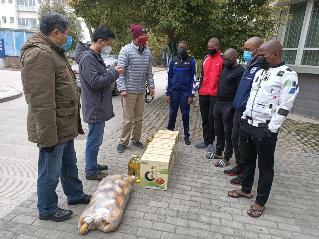 2020年2月13日上午,土木与交通工程学院党总支书记赵杰、院长王付全带领学院疫情防控党员先锋队深入留学生公寓看望慰问了我院在校留学生,为他们送去了鸡蛋、食用油、土豆等生活物资,解决留学生疫情防控期间生活问题,使留学生们在疫情防控时期感受到了学院的温暖与关怀。