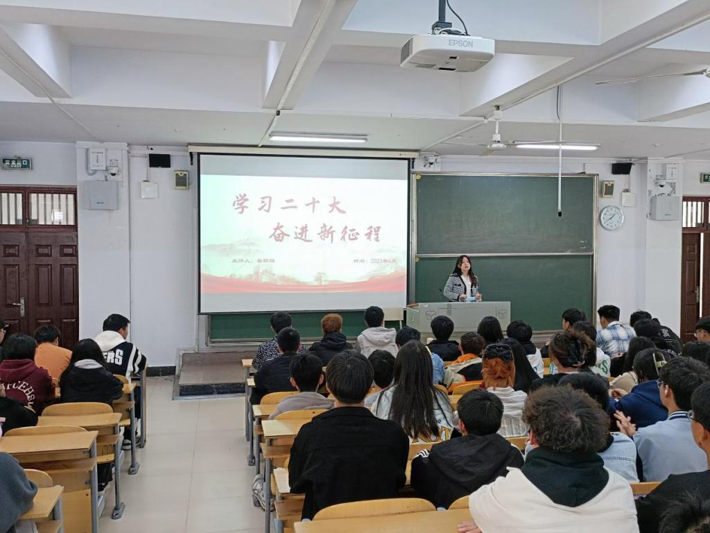 为在向第二个百年奋斗目标进军的关键时刻,使新时代青年以党的二十大精神为指引,深入学习贯彻习近平总书记关于青年工作的重要思想,按照省委和团中央的工作要求,以理想者、担当者、吃苦者、奋斗者的姿态,奋进新征程,诠释新青春,我院21级、22级辅导员于2023年4月组织学生召开了“党的二十大”主题教育宣讲会。