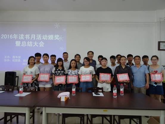 6月14日下午,我校2016年读书月书评活动颁奖暨总结大会在图书馆五楼会议室举行。科技处负责人及校团委老师应邀参会。