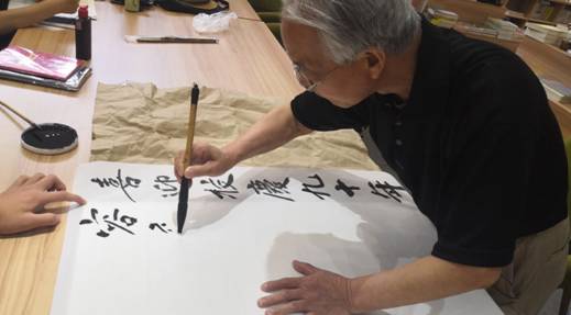 廖老师为学校90周年校庆提诗,书法精湛,笔墨横姿。