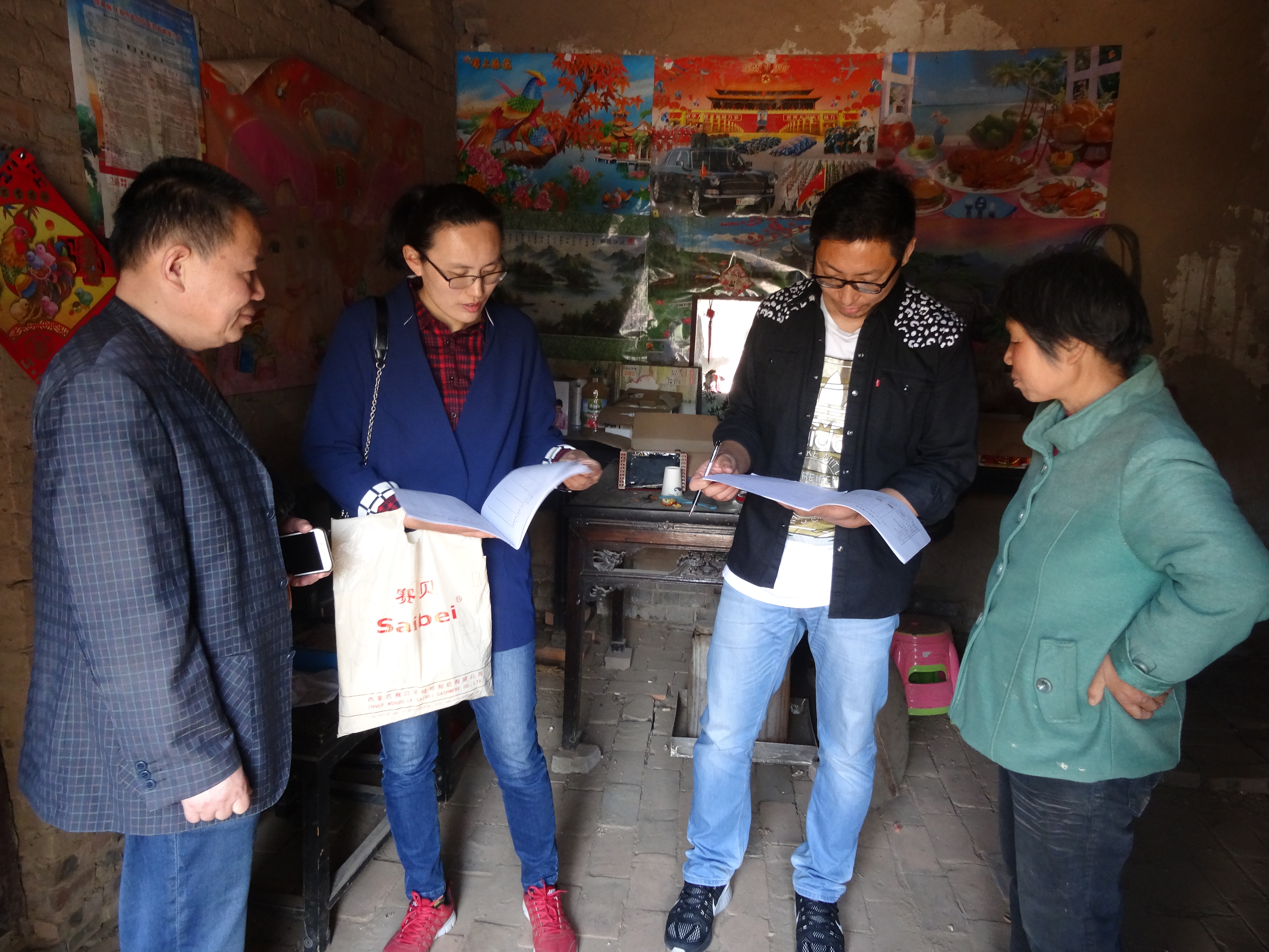 2018年4月18日上午,机关党总支十支部四名党员到刘店乡郭景村开展第一季度精准扶贫入户走访和政策宣传活动。