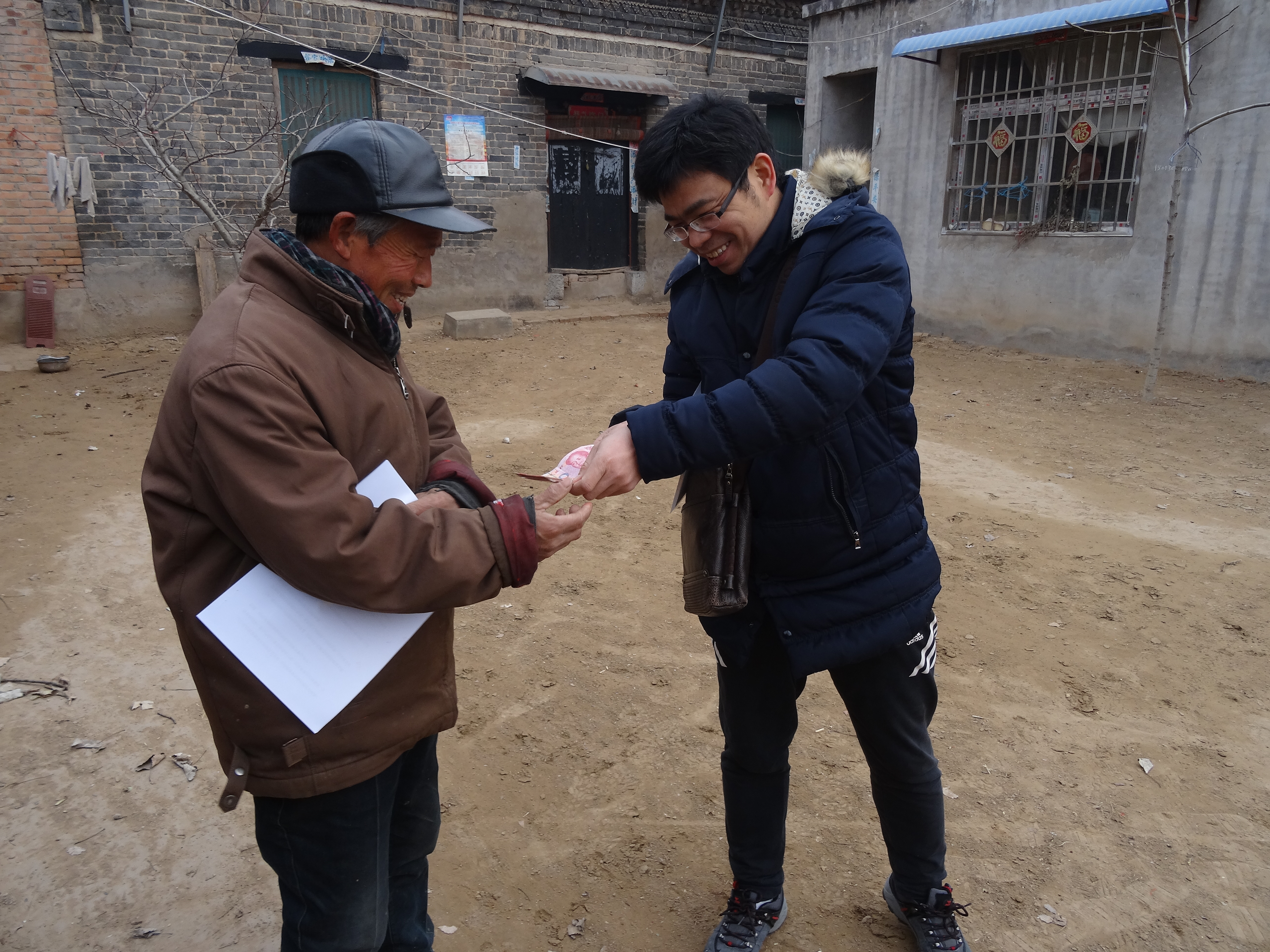 2018年1月22日,机关党总支十支部张天宝、刘素军和王明明赴对接扶贫对象刘海家中,送去建设羊圈急需的爱心款和规模养羊技术资料。