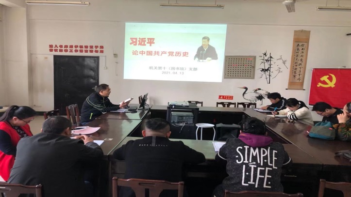 413日,机关党总支第十党支部全体党员在图书馆二楼会议开展党史专题集中学习。支部书记关六三主持。
