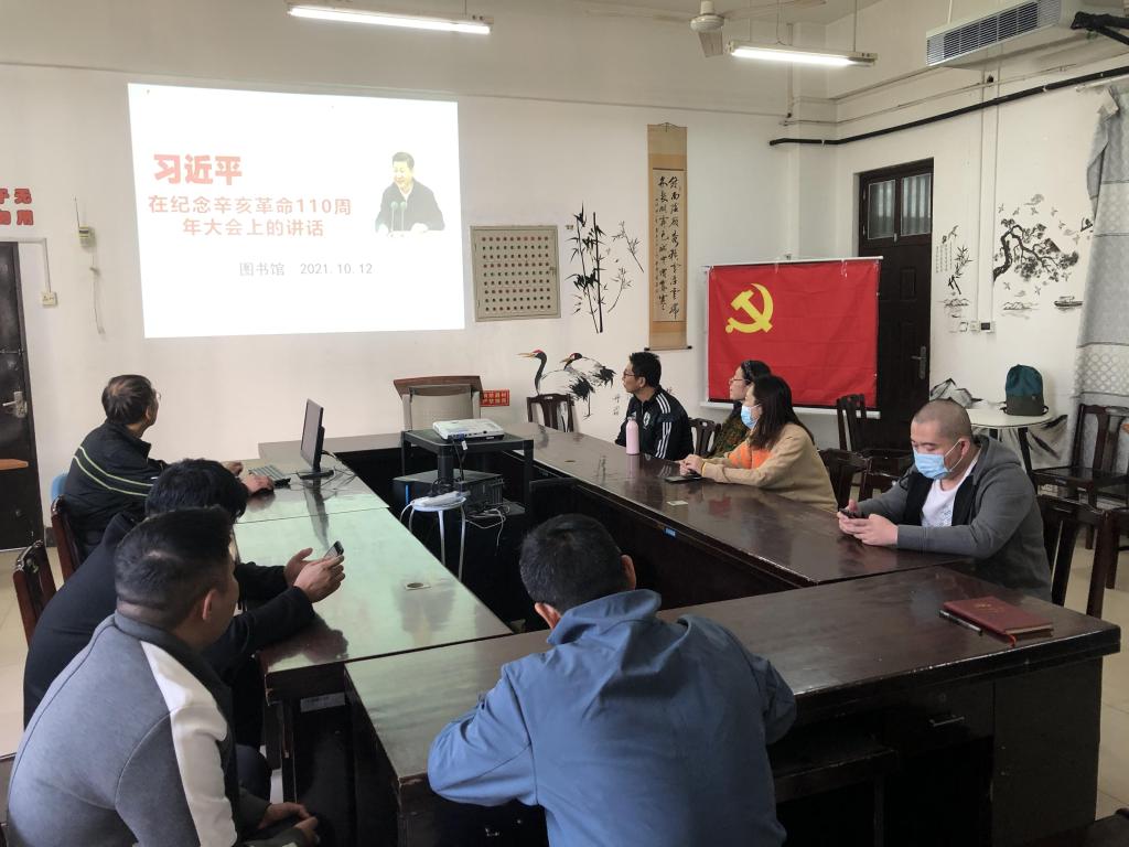 10月12日下午,图书馆在二楼会议室召开专题会议,集中学习习近平总书记在纪念辛亥革命110周年大会上的讲话精神和《中国共产党统一战线工作条例》,会议由馆长关六三主持,全体教职工参加。