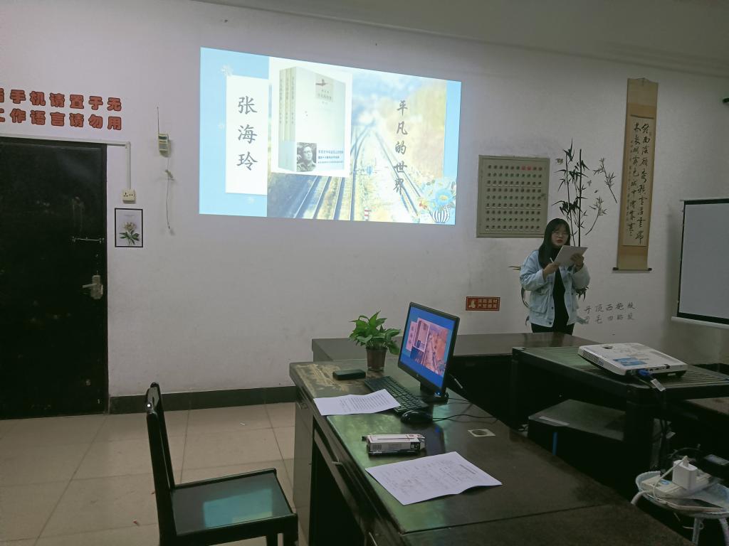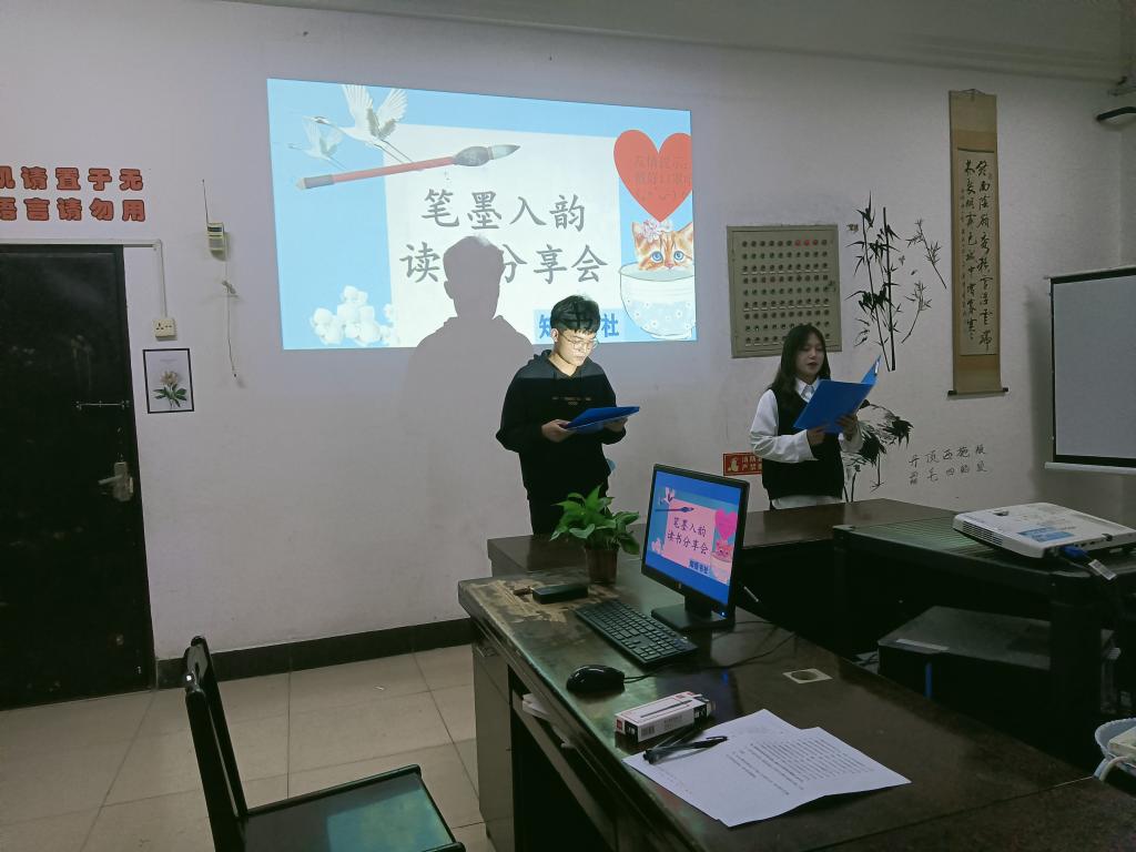 2021年11月13日,知悟书社举办了活动“笔墨入韵——读书分享会”,在主持人的带动下,PPT随着参赛同学同步放映,大家表现很积极,社团负责人也提醒大家戴好口罩,注意防控措施。