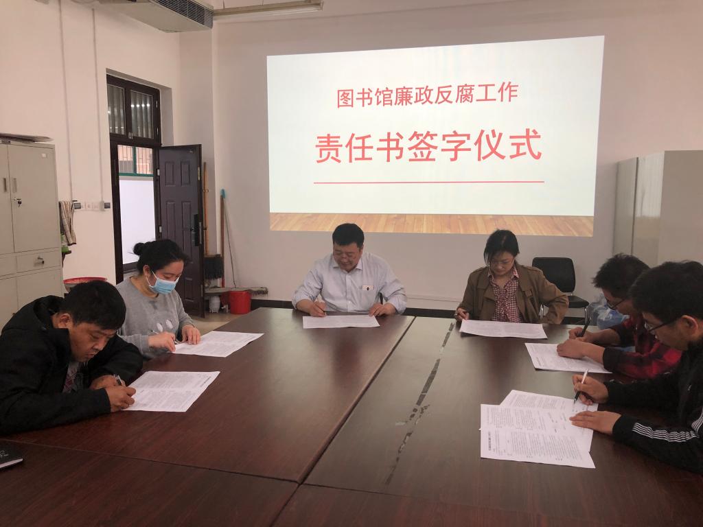 4月18日下午,依据我校相关文件精神,图书馆举行了2023年《党风廉政建设和反腐败工作责任书》签订仪式。仪式上,图书馆朱惠斌馆长对学校相关要求进行了说明,并强调了建立反腐倡廉建设体系的重要性,随后,图书馆副馆长、四位科长与馆长一起共同签订了《党风廉政建设和反腐败工作责任书》。