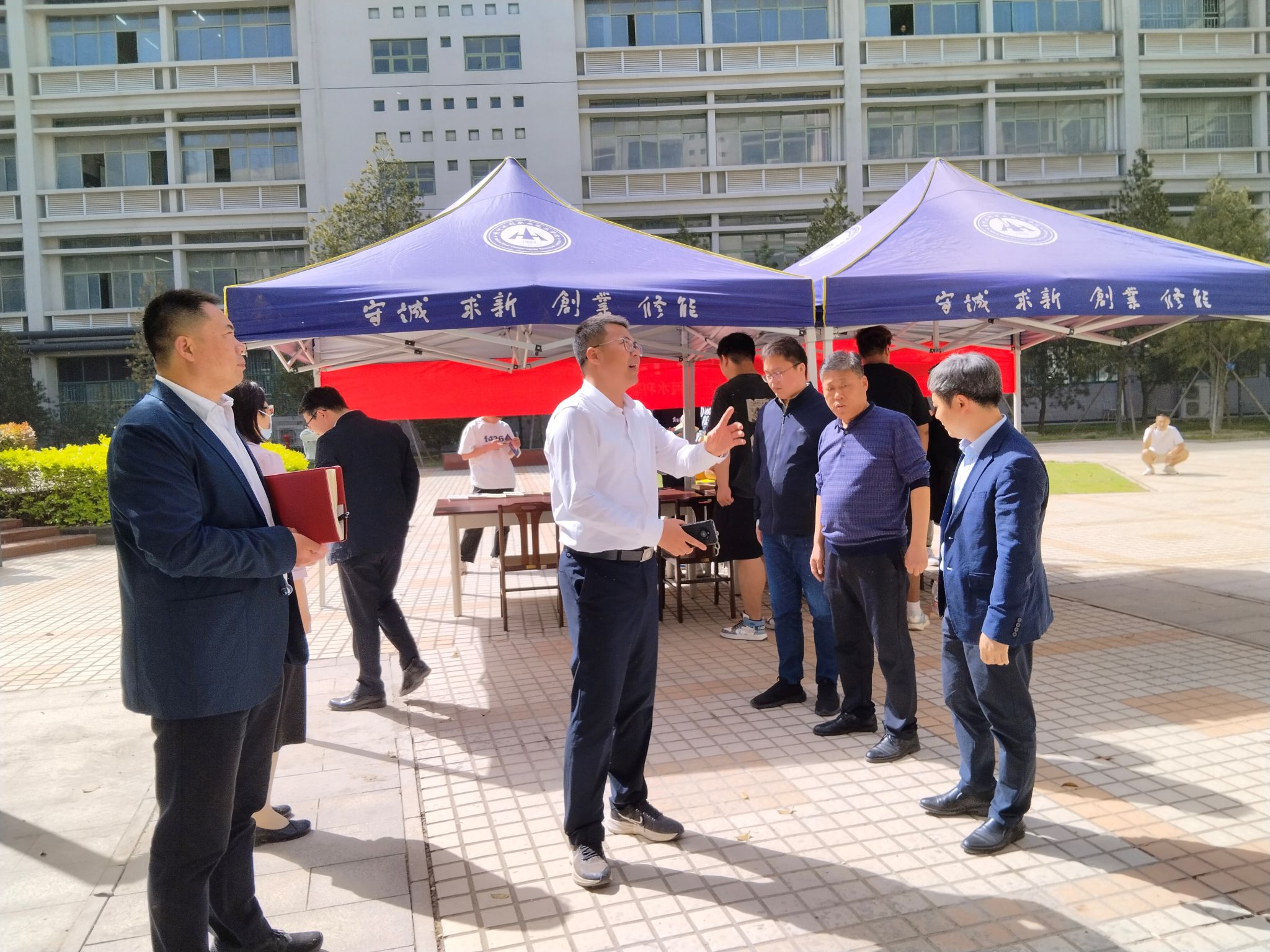 4月23日,校党委副书记、校长胡昊、纪委书记刘许亮到图书馆现场调研指导工作,党政办、发规处、后勤处和图书馆等部门负责人陪同调研。胡昊一行人对图书馆各区域进行了巡查,全面了解图书馆现阶段各项工作、特别是迎接升本工作等开展落实情况,同时对图书馆目前存在的阅览室、两侧卫生间等问题进行了具体指导。