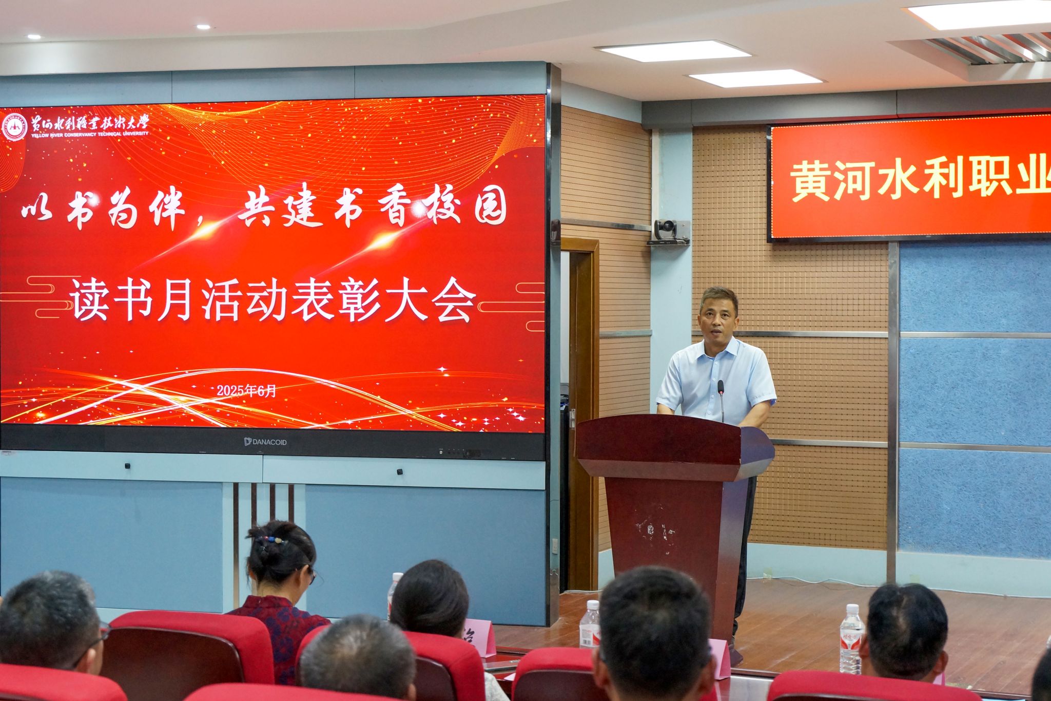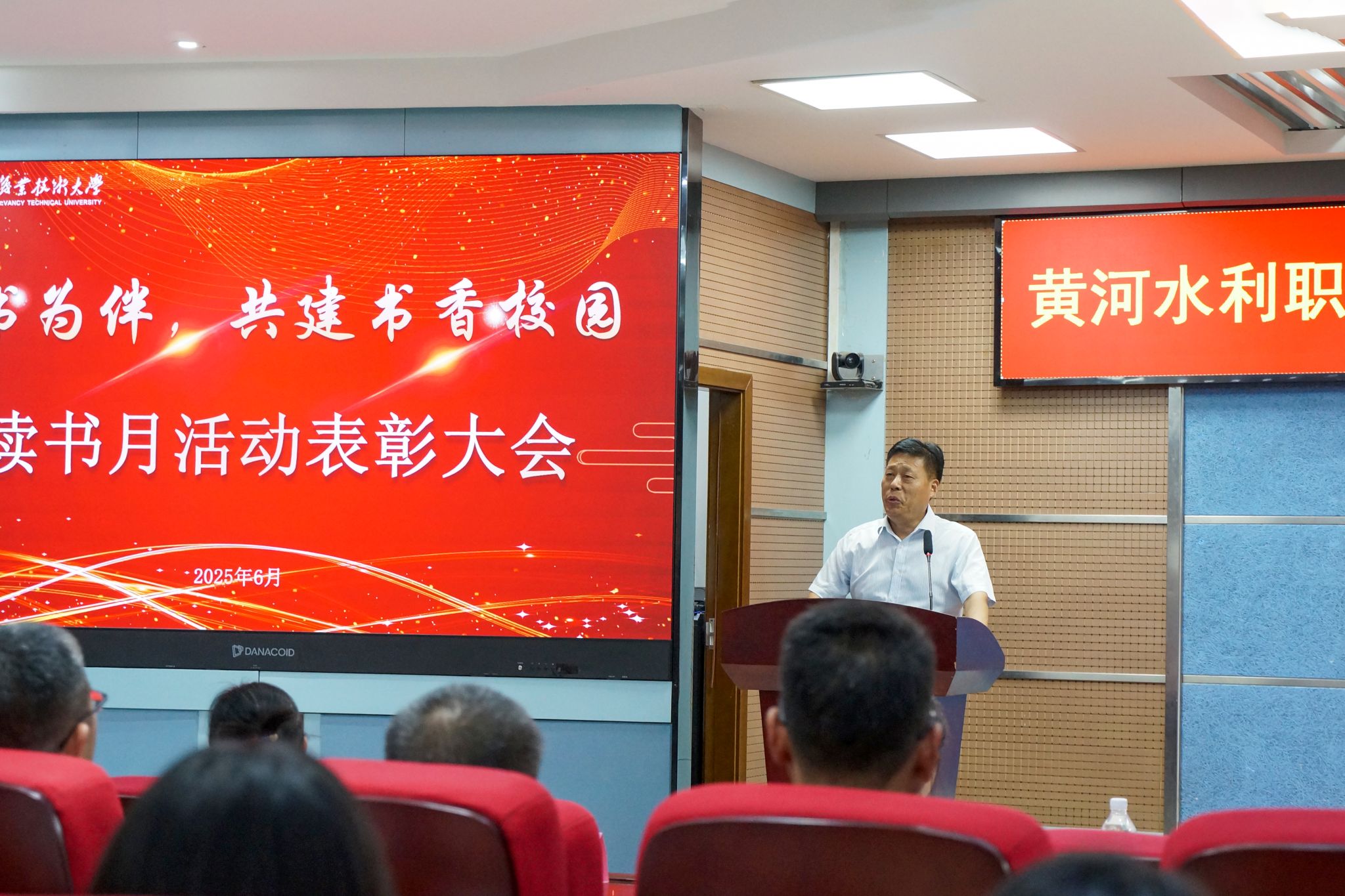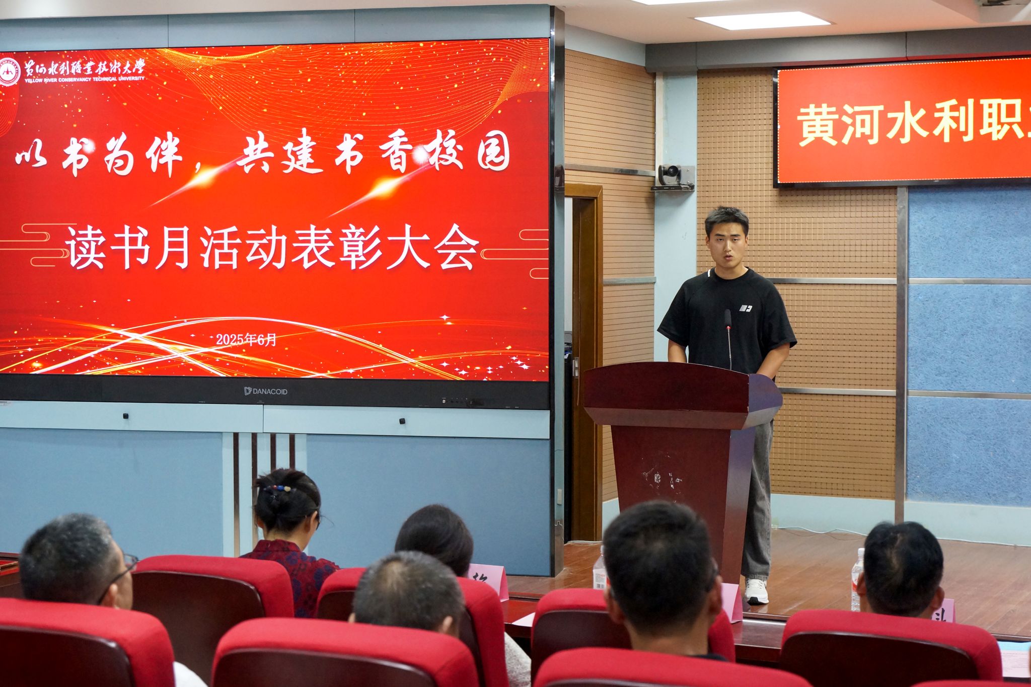 6月17日,黄河水利职业技术大学“读书月”系列活动总结与表彰大会在3号实训馆学术报告厅举行。校党委委员、副校长菅浩然,图书馆馆长樊建科,副馆长苏超,商务与管理学院副院长尹友,相关企业代表及获奖师生代表齐聚一堂,共同见证了这一精彩时刻。本次大会由图书馆副馆长苏超主持。