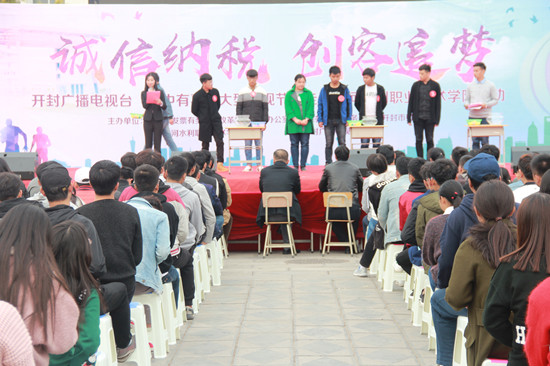 为了培养学生消费依法索取发票,合法、规范使用发票的意识。2017年11月11日下午,由开封市国家税务局、市财政局、市地方税务局共同主办,黄河水利职业技术学院校团委、开封广播电视台协办的“票中有喜”大型电视节目在我校扬帆路举行,近600名师生参与其中。