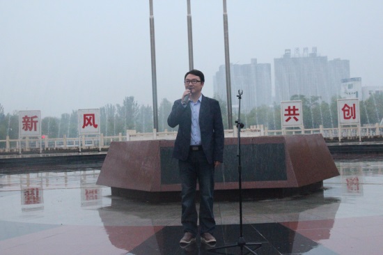 校团委书记李聪老师讲话。他告诉大家要珍惜今天的幸福生活,时间可以远去,历史不容遗忘。要热爱我们的国家,坚定理想信念,树立远大理想。每一名学子都要把爱国的热情转化为理想奋斗的目标。“不忘初心、牢记使命”,争做一名新时代合格的青年大学生。