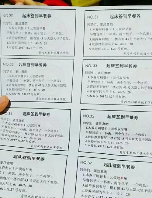 为了奖励同学们,鼓励同学们坚持早起,勤奋学习,校学习部并设立了奖励活动,“学霸一元吃早餐”,自2017年11月20日起,每周一6:40-7:20会在餐厅的43号窗口开设“学霸一元早餐”,每周一的前一百名学生只需要使用1元钱即可得到4元的早餐。