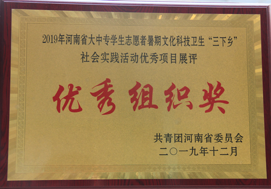 12月19日,2019年全省大中专学生志愿者暑期“三下乡”社会实践活动优秀项目展演在新乡学院举办,我校社会实践项目参与展示,并获得“优秀组织奖”。
