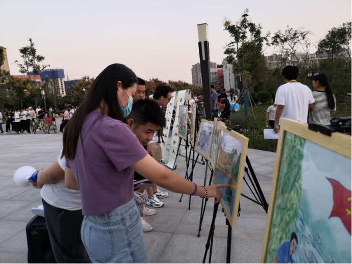 下午五点活动拉开了帷幕,一是展出黄河流域生态保护和高质量发展相关宣传展板,让同学们了解河南省黄河流域生态保护和高质量发展工作要点、河南省黄河生态廊道建设规划等,明白黄河流域生态保护和高质量发展的重要性。二展出我校学生自己创作的以黄河文化为主题的写生与书法作品,更好地引领同学们弘扬黄河精神,传播黄河文化,坚定文化自信。三是由我校水利工程学院刘光岩老师为同学们讲解演示黄河埽工技术,给同学们普及此项技术对黄河治理的重大意义。四是我校大学生艺术团合唱队的同学们为大家带来了《保卫黄河》、《在灿烂阳光下》大合唱,同学们以歌咏志、以歌抒怀,表达了对伟大祖国和母亲河的热爱与美好祝愿。