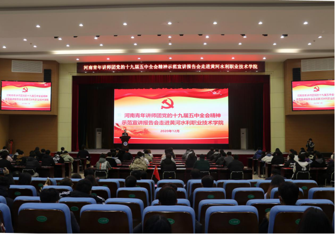 为深入学习贯彻党的十九届五中全会精神,12月8日下午,团省委组织河南青年讲师团在我校大学生活动中心举办“党的十九届五中全会精神”示范宣讲报告会。共青团河南省委宣传部部长孙冬青、学校部副部长张艳斌,我校党委副书记刘卫锋、校团委全体教师、各学院分团委书记及150余名学生代表聆听宣讲。报告会由讲师团成员牛琳琳主持。