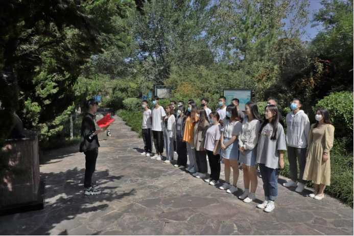 活动最后,红旗渠精神传承者协会成员、部分学生干部在烈士雕像旁,高举右拳,面向团旗,重温入团誓词。学子们纷纷表达了对校友吴祖太的深切缅怀和思念,表示要学习优秀校友吴祖太的感人事迹,继承吴祖太的伟大遗志,弘扬红旗渠精神,在党的百年华诞之际,学习党在革命、建设、改革等各个历史时期的伟大奋斗史,铸牢初心使命,为实现中华民族伟大复兴的中国梦贡献青春力量。
