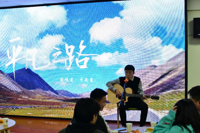 之后,伴随着《平凡之路》、《少年》等歌曲,青年代表带领全场人员重温《觉醒年代》相关影视片段,让同学们感受那个年代的青年与国家休戚与共的紧密联系,树立为中华民族伟大复兴的远大志向。