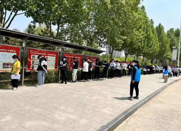 活动开始前,志愿者们协助医护人员搭建帐篷等布置献血活动现场,为活动的开展提前做好各项准备。活动期间,我校学生踊跃报名积极参与献爱心活动,献血地点排起了长队,志愿者们耐心地询问同学们的身体情况,指引符合献血要求的献血同学填写无偿献血志愿申请表;并引导同学们“佩戴口罩、保持一米间距”有序排队参与化验、抽血、留观等环节。部分同学排了两个多小时的队伍仍坚持表示:“希望用自己的一点微薄之力,帮助有需要的人。”志愿服务的开展也得到了开封市中心血站的医护工作人员的肯定,他们表示:“今日单车采血量,已达到开封地区历史最高。黄河水院同学们对于参与无偿献血公益活动的热情和爱心,我们很感动;今天参与活动的同学华很多,很感谢志愿者同学们一直在烈日下开展维持秩序、指引等工作,帮助我们一起顺利完成采血任务。”