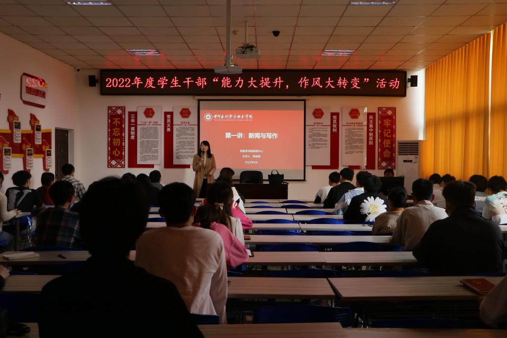 为提升我校各级团学干部基础业务能力,夯实写作基础,增强写作能力,4月19日,校团委在活动中心309及各分会场举行团学干部写作技能提升专项培训,全校各级团学干部参加培训。本次培训由党委宣传部新闻宣传科科长郝迪婧主讲。