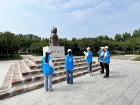 2号,实践团队员们赴开封市黑港口观景台文化长廊进行参观学习,了解黄河生态廊道建设情况、黑港口历史文化与“幸福河”的建设成果;第二,通过实地考察、寻访附近住户、发放宣传页等方式了解近年来黄河流域生态环境(开封段)的生态环境变化、详细讲解了垃圾分类的知识,并对周围的垃圾进行了清理,号召动员广大村(居)民树立绿色文明意识,从我做起、从现在做起,携手保护母亲河,建设美好绿色家园。