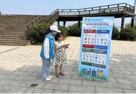 实践队成员们宣讲垃圾分类知识并清理沿岸垃圾