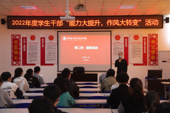 为提升我校各级团学干部基础业务能力,夯实业务基础,增强工作能力,4月30日,校团委在活动中心309及各分会场举行团学干部摄影技能提升专项培训,全校各级团学干部参加培训。本次培训由商务与管理学院田丰老师主讲。
