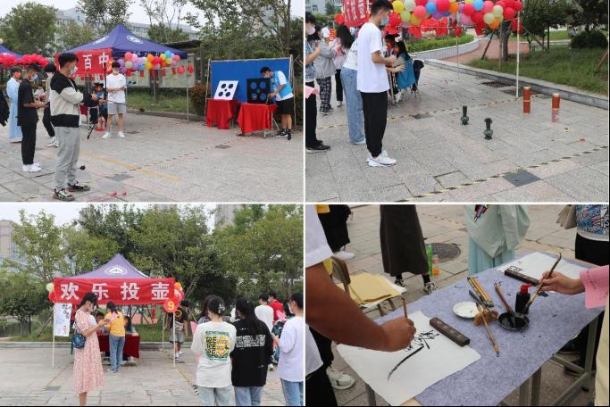 国庆节当天,校团委在扬帆路活动现场举办了内容丰富、形式多样的传统文化进校园、与传统文化面对面趣味游艺项目。校领导们与学子们亲切互动。与国旗合影、射箭、投壶、猜灯谜、舞龙灯、踢毽子、花样跳绳、汉服表演等赢得了学校领导的赞誉,吸引了大批师生驻足观赏,校领导还与同学们频繁互动,气氛热烈,赢得了在场师生们一阵又一阵的热烈掌声。校园里红旗飘飘,气氛热烈,欢声笑语不断。