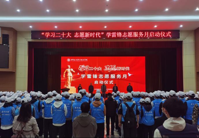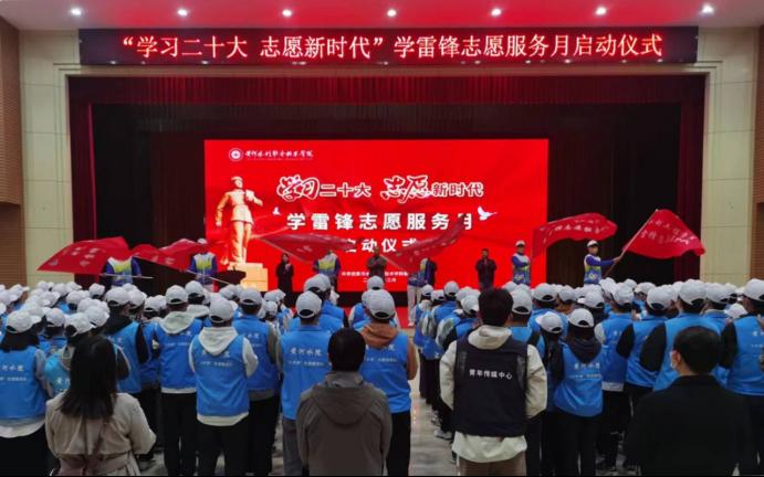 今年是全国第60个学雷锋纪念日,为深入宣传贯彻党的二十大精神,落实习近平总书记对深入开展学雷锋活动作出的重要指示精神,深刻把握雷锋精神的时代内涵和实践要求,进一步在全校范围内掀起传承雷锋精神的热潮,3月6日,我校在大学生活动中心报告厅举行“学习二十大 志愿新征程”学雷锋志愿服务月启动仪式。校党委副书记、工会主席杨士恒出席活动,党委宣传部部长彭新立、党委学工部副部长柴杉、团委副书记郝黎闻、各学院团委书记及全校“学雷锋”志愿服务队志愿者代表300余人参加仪式,会议由团委副书记姜璐主持。