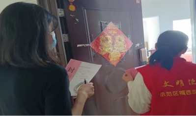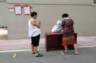 王金梦瑶上门为返乡人员贴封条并进行核酸检测
