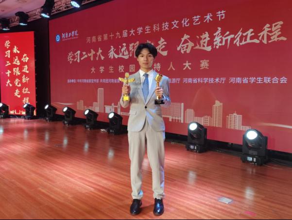 近日,由中共河南省委宣传部、河南省教育厅、共青团河南省委、河南省文化和旅游厅、河南省科学技术厅、河南省学生联合会共同举办的河南省第十九届大学生科技文化艺术节主持人大赛在河南工学院举行,我校杨威威同学荣获优异成绩。