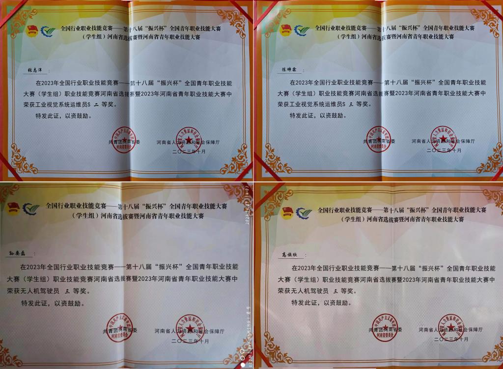 10月27至29日,以“踔厉奋发启新程 挺膺担当建新功”为主题的全国行业职业技能竞赛——第十八届“振兴杯”全国青年职业技能大赛(学生组)主体赛河南省选拔赛暨河南省青年职业技能大赛在漯河技师学院成功举办。经过激烈角逐,我校电气工程学院张志洋、陈帅霖同学分获工业视觉系统运维员S赛项二等奖、三等奖,测绘工程学院孙要磊、高族欣同学获无人机驾驶赛项三等奖。