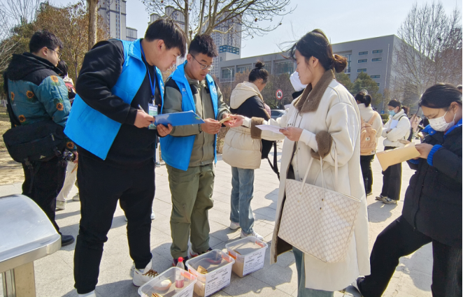 为维护考场秩序,保障教师资格证考试的顺利进行,我校青年志愿者协会招募60余名志愿者,于3月9日开展教师资格证笔试志愿服务活动。活动现场,志愿者们手持考生说明宣传页、信封等,为同学们讲解考试各项注意事项,帮助考生保管通讯工具,负责清理考场卫生等,保障考试的顺利进行。