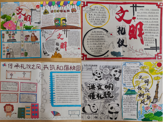 我校青年学子用画笔和色彩诠释着对文明礼仪的深刻理解和积极追求,以独特新颖的版面设计、合理美观的色彩搭配,展现了一个个生动形象的场景,引导同学们将文明意识内化为日常学习和生活的行为自觉。