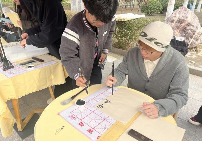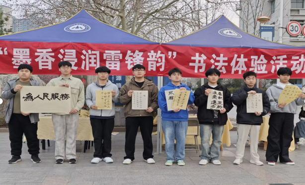 3月11日,校社团联合会联动书法协会在思源路举办“墨香浸润雷锋韵”主题书法体验活动。现场设置“雷锋箴言书写区”与“互动拓印体验区”,众多书法爱好者踊跃参与,他们挥毫泼墨,横竖撇捺间,笔锋游走,不仅展现了扎实的书法功底,更传递出对雷锋精神的敬仰。活动通过“传统书法+精神文化”相结合的创新融合,让雷锋精神的传承跨越时空界限,在笔墨交融中绽放新时代华彩。