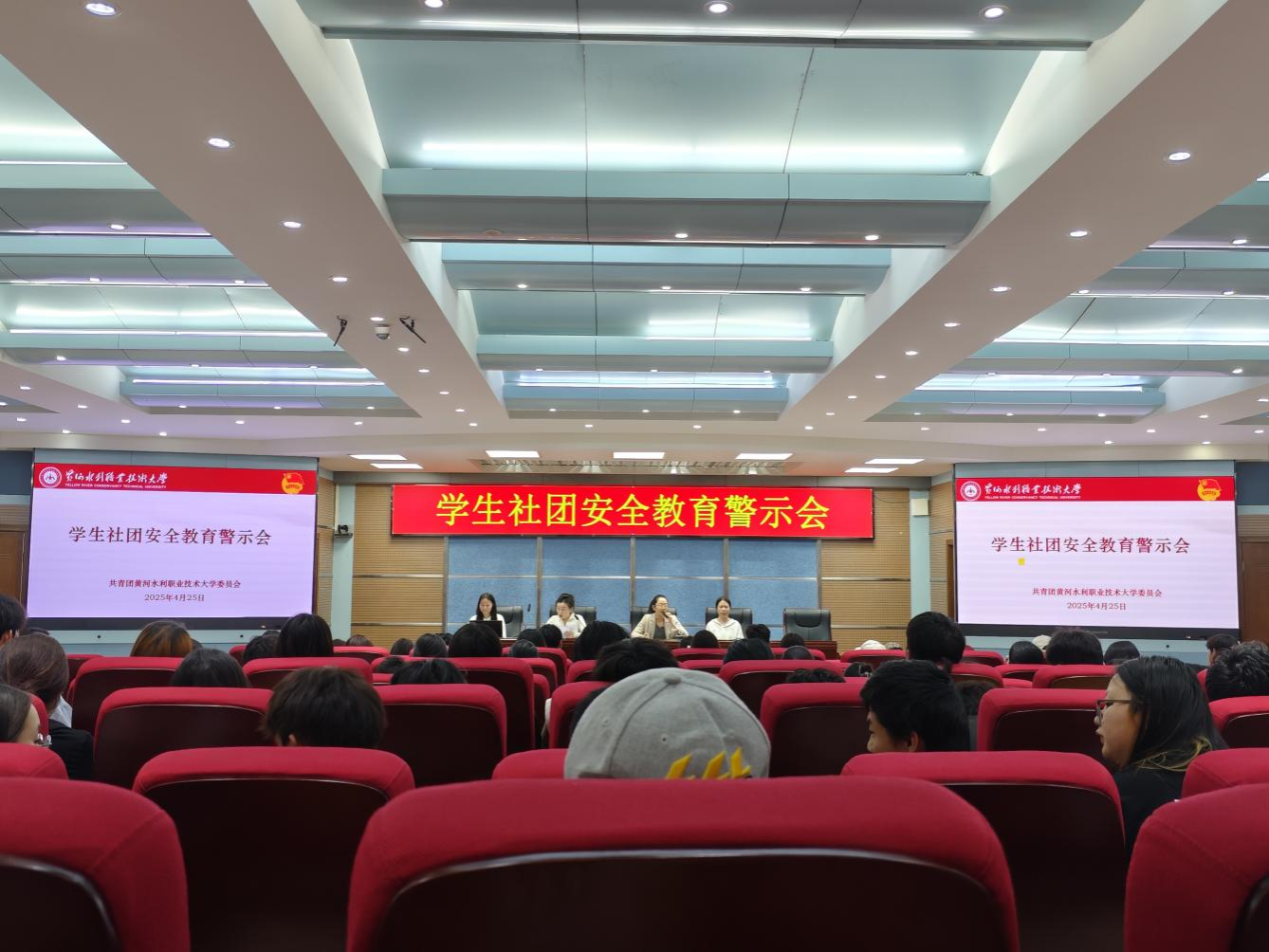 为深入贯彻落实校园安全管理工作要求,加强学生社团规范化建设,提升校园文化活动安全管理水平,4月25日,校团委在三号水利报告厅组织召开学生社团安全教育警示会。校团委负责教师、各学生社联分会负责同学、91个社团负责人,共计200余名学生参加会议,会议由校团委社团实践部部长华乃馨主持。