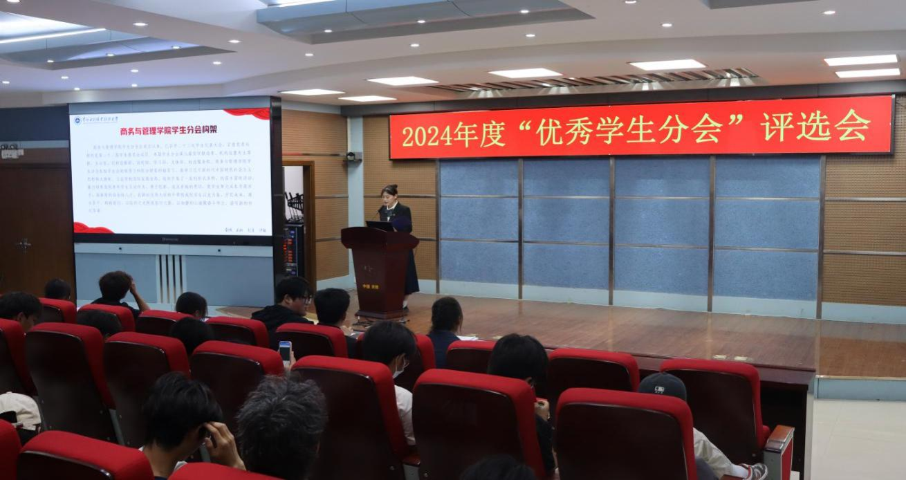 各学院学生分会代表、学生代表齐聚一堂,共同见证这一荣耀时刻。活动现场,各学生分会代表依次上台,通过精心制作的PPT,从组织架构、制度建设、特色活动、工作成果等方面进行了全面生动的汇报。他们用翔实的数据、生动的案例,展示了过去一学年在推动校园文化建设、助力学生成长等方面所取得的成绩。经过综合评审,结合年度工作表现及协作成效,商务与管理学院学生分会、土木与交通工程学院学生分会、测绘工程学院学生分会、国际教育学院学生分会、金融与会计学院学生分会荣获“优秀学生分会”称号。