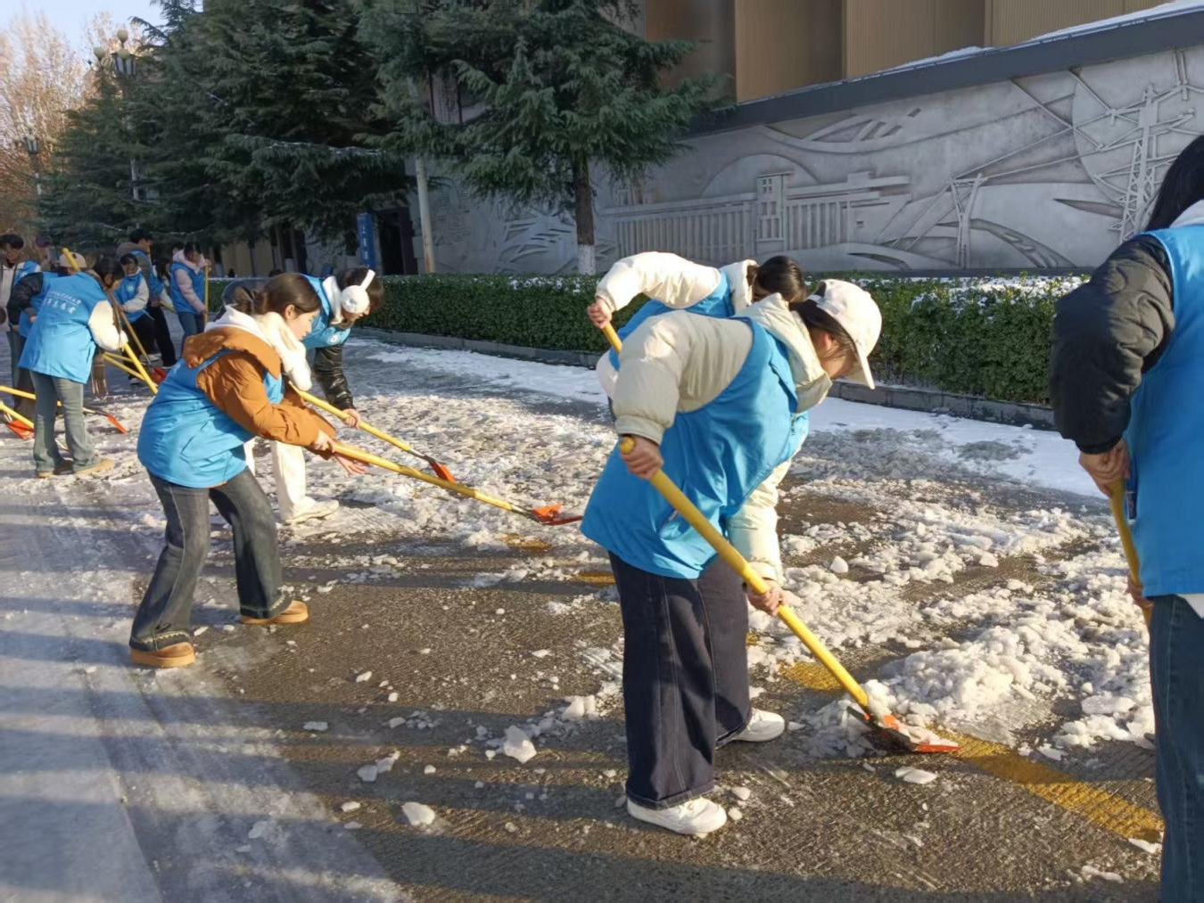 此次扫雪除冰活动,志愿者们以实际行动践行了“奉献、友爱、互助、进步”的志愿精神,在劳动中强化了服务意识与责任担当,进一步传递出校园温情,凝聚起共建平安、和谐、文明校园的青春力量。