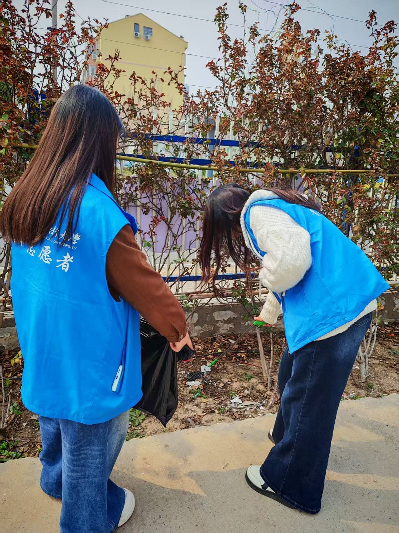 3月12日,青年志愿者协会开展“拾叶护青绿,志愿暖春光”志愿服务活动。30余名志愿者们身着“小水滴”马甲,深入校园绿化带,认真清理树木根部杂物与枯枝落叶,细致维护绿植生长环境。大家分工明确、配合默契,用劳动践行爱绿护绿担当,让校园更显整洁有序、生机盎然。一抹抹“志愿绿”与春日新绿交相辉映,成为校园里温暖的风景线。