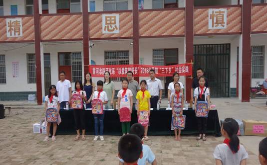 实践团队为家庭困难学生赠送书包文具