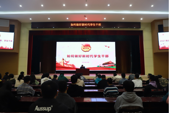 10月31日,我校2021年度班团干部、学生干部培训班在学生活动中心报告厅开班,本次培训班以集中授课和分会场线上授课相结合的方式进行培训,校团委副书记郝黎闻以《如何做好新时代学生干部》为题进行开班第一讲。