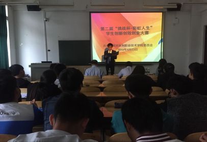 为进一步促进“大众创业,万众创新”,培养和提升大学生的创造精神、创新意识和创业能力,激励我校大学生积极投身创新创业,助力我校创新驱动发展,4月23日下午,由院团委主办的2016年黄河水利职业技术学院第二届“挑战杯-彩虹人生”学生创新创效创业大赛创意设计类大赛在JX5306教室举行。