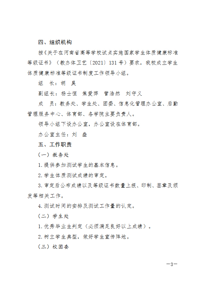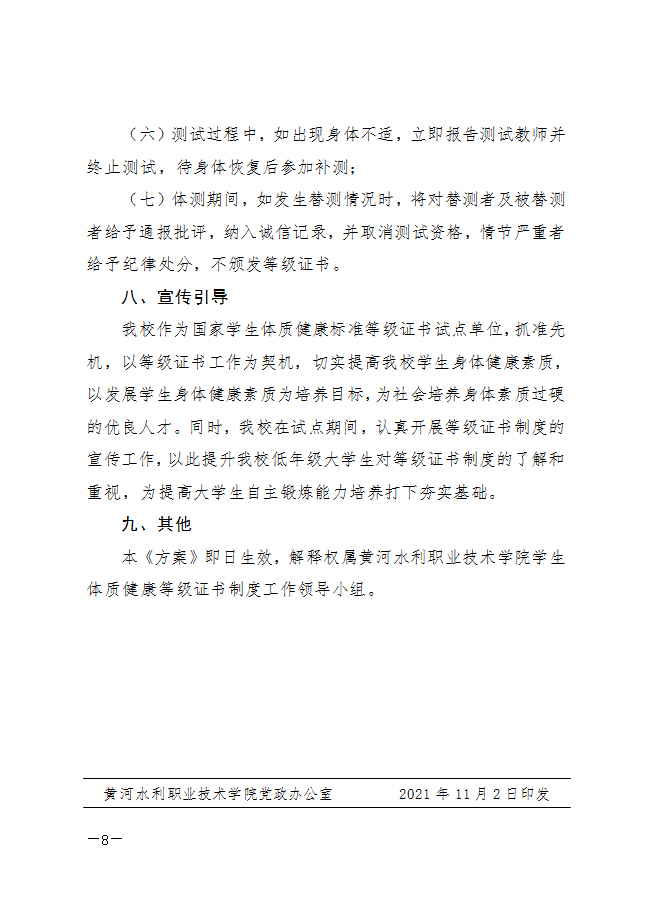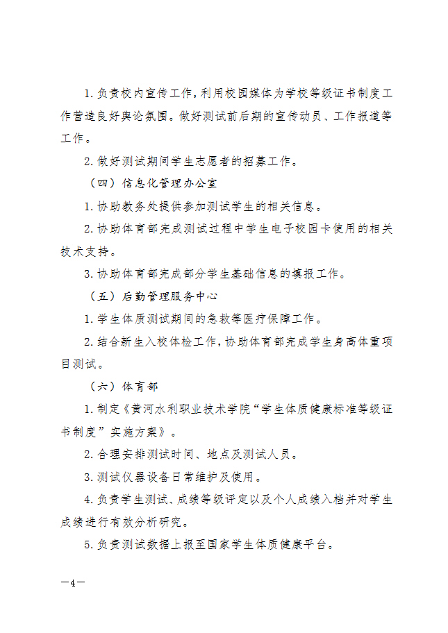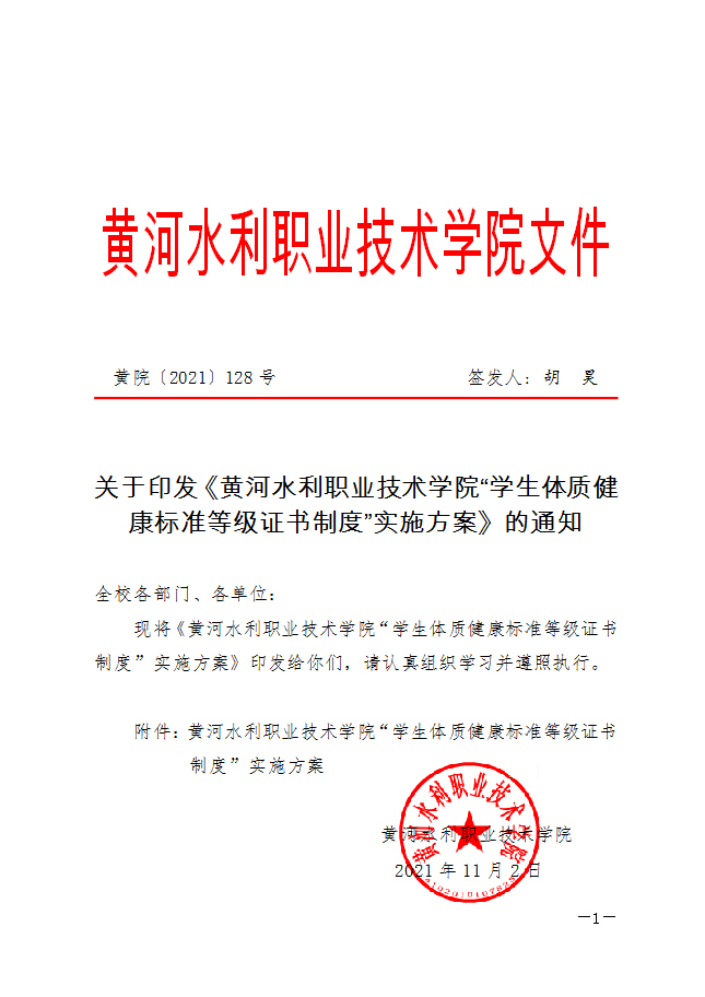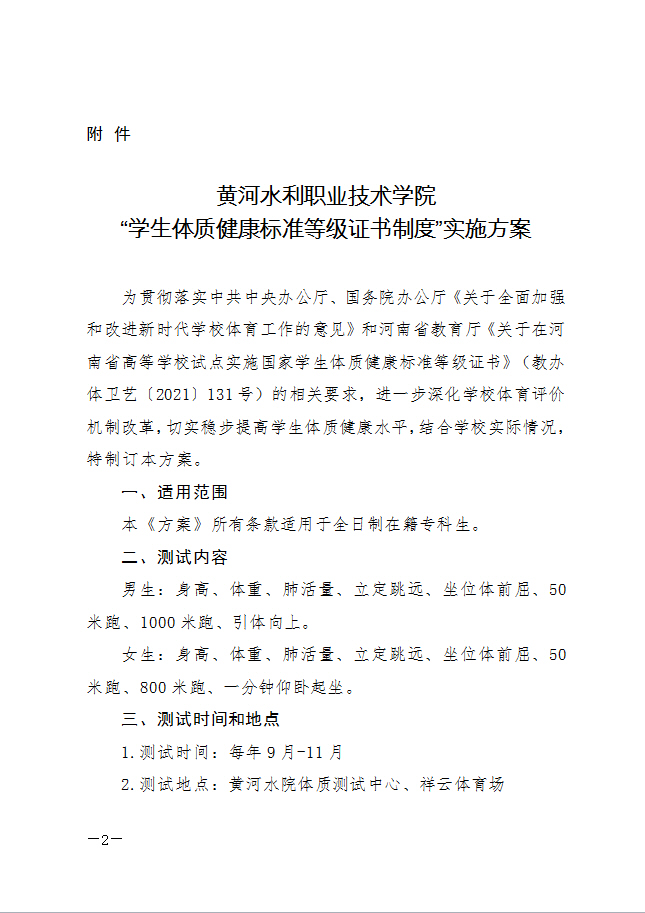 黄河水利职业技术学院“学生体质健康标准等级证书制度”实施方案