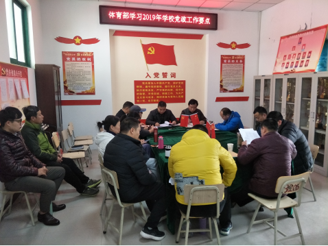 2019年2月26日下午,体育部在部门会议室召开会议,传达并学习我校2019年党政工作要点,部署新学年工作,会议由直属党支部书记刘盎主持,全体教师参会。