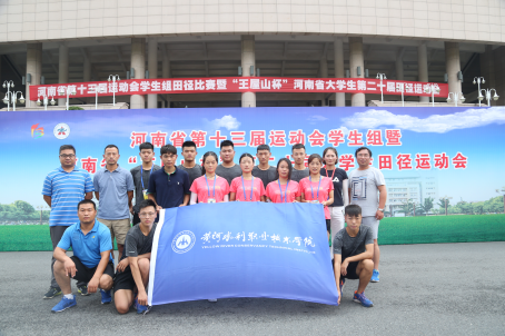 2018年7月15日至20日,河南省第十三届运动会学生组大学生田径比赛暨河南省大学生第二十届田径运动会在郑州大学举行,我校代表团以副校长焦爱萍为团长、体育部主任刘盎为领队,熊西宇、刘建民、和琰为教练带领12名运动员参加本次比赛。经过五天的激烈角逐,共获得了1枚金牌、1枚银牌、4枚铜牌、2个第五名,4个第六名,2个第八名。最终以总分71分获得专科甲组团体总分第3名的好成绩。