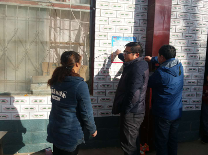 正值寒冬腊月,体育部党总支书记刘盎等一行三人冒严寒,分别来到扶贫对象张文平、耿凤英、刘国安、刘兵建家中,针对精准帮扶明白卡是否上墙、讲解明白卡内容、宣传平安乡村建设、告知贫困户注意防火防盗及安全用电方法、宣传乡村宜居环境建设、告知并帮助贫困户清除房前屋后杂物进行了系统帮扶;了解、记录了扶贫对象第四季度收入与支出情况并与所联系帮扶贫困户在贫困户精准帮扶明白卡上签名、按手印。