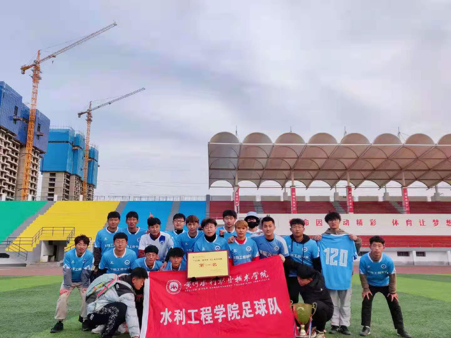 12月13日,我校2020年“黄河杯”八人制足球赛在祥云足球场圆满结束,在最后一场冠亚军争夺赛中,水利工程学院代表队和土木交通学院代表队鏖战60分钟至1:1,最终在点球大战中,水利工程学院代表队5:4战胜土木交通学院代表队,最终捧起冠军奖杯,这也是水利工程学院第八次捧起冠军杯,完成了八连贯的壮举。