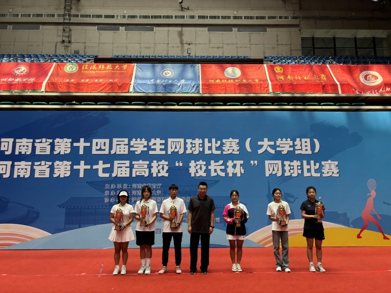 我校网球队由主教练张亚廷、教练员李风涛带队参赛,我校网球健儿在历时6天的比赛中充分发扬了黄河水院人“特别能吃苦,特别能战斗,特别能打硬仗”精神,赛场上顽强拼搏,勇创佳绩,获得历史性新突破——取得专科甲组男子团体冠军、男子单打冠、亚军、男子双打亚军、女子团体亚军、女子单打亚军、女子双打第四名的历史最好成绩,男子团体再次成功“卫冕”,取得男子团体“三连冠”。