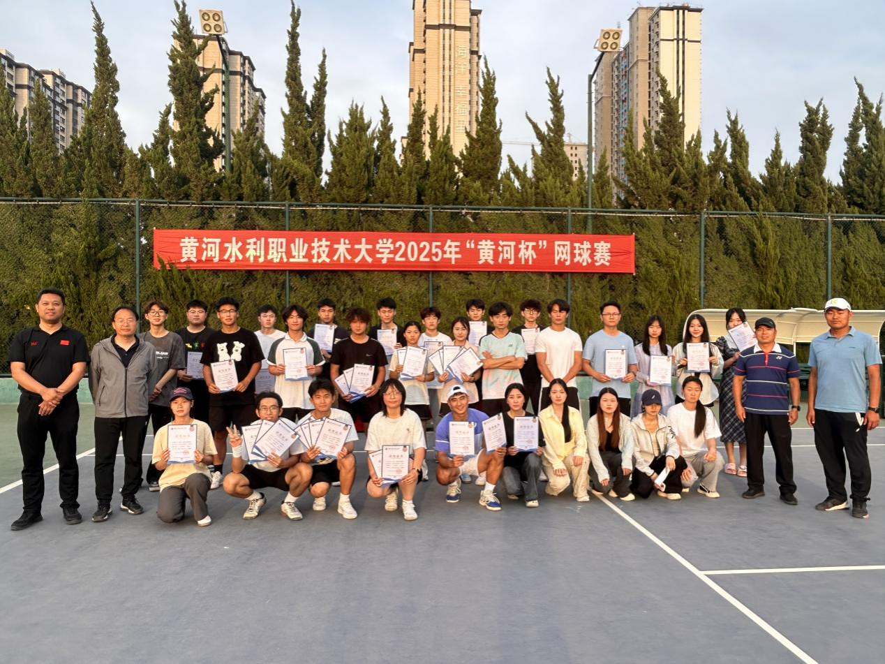 4月29日下午,历经8天79场比赛的激烈比拼,黄河水利职业技术大学2025年“黄河杯”网球赛在网球场胜利闭幕,体育部主任王宁、“一站式”学生社区党工委副书记郭豪杰、该项赛事裁判长张亚廷、校网球队教练员李凤涛出席闭幕式,并为获奖运动员颁奖。
