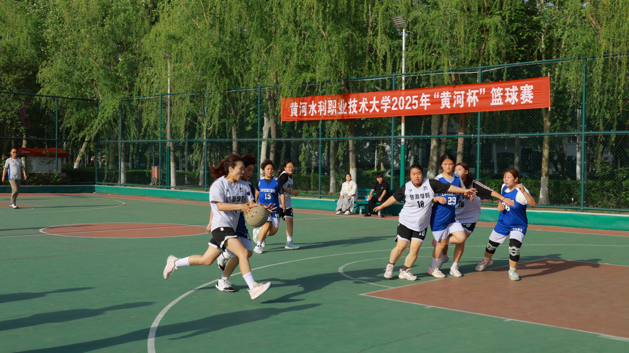 最终男子组比赛中,旅游学院、水利工程学院分获冠亚军,测绘工程学院、国际教育学院获得并列第三名;女子组比赛中,水利工程学院、测绘工程学院分获冠亚军,国际教育学院、土木与交通工程学院分获第三名、第四名;国际教育学院王馨若同学和旅游学院张诺言同学荣获最有价值球员。